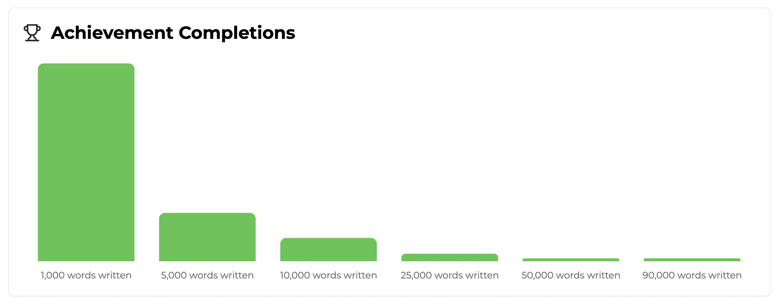 The achievement completion chart shows the current state of the userbase in terms of the number of users who have completed each achievement that you’ve configured against this metric. Learn more about achievements.
